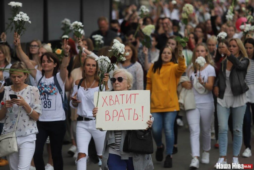 Molti cortei pacifici di donne vestite di bianco e con fiori bianchi si stanno moltiplicando, a Minsk e in altre città. Il canale Nexta testimonia l’enorme quantità di questi cortei, piccoli o grandi, dalle città ai villaggi di tutto il paese. A impressionare è proprio la capillarità del dissenso.