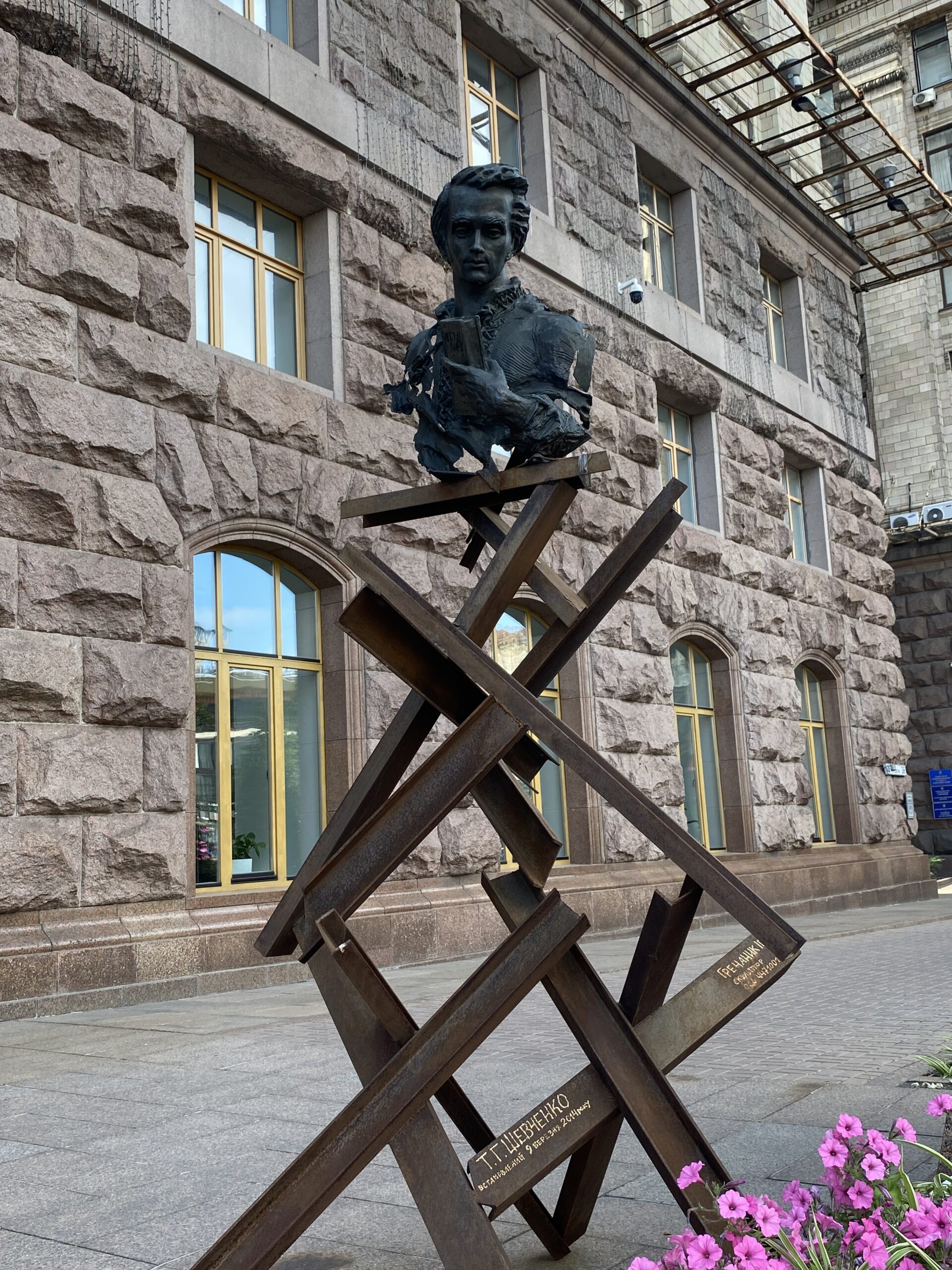 Il centro di Kyiv. Che meraviglia. La gente ride e vive come se non ci fosse un domani… coraggiosi. Tutto questo fino a che non arrivi all’edificio del consiglio municipale. Il poster che chiede di rilasciare dalla prigionia i difensori dell’Azovstal, un poster prodotto dall’IA di Zaluzhnyi che porta Putin in tribunale e una macchina distrutta dai proiettili… più avanti c’è il Maidan.