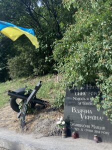 Un riccio ceco vicino il memoriale di Serhiy Nigoyan, un attivista armeno-ucraino dell'Euromaidan che è stato ucciso a colpi di arma da fuoco durante le rivolte sulla via di Hrushevsky nel 2014.