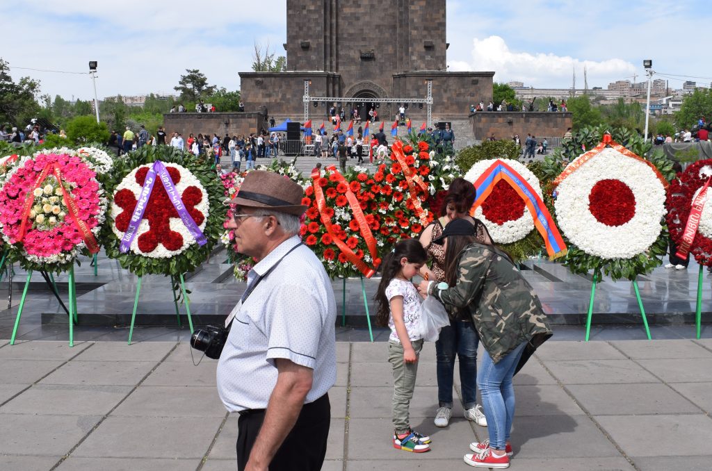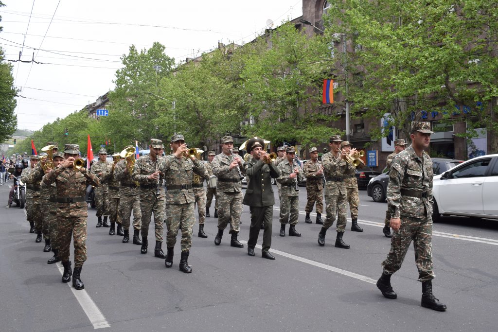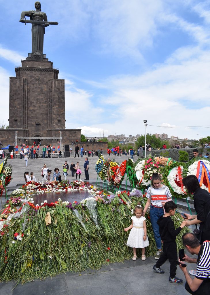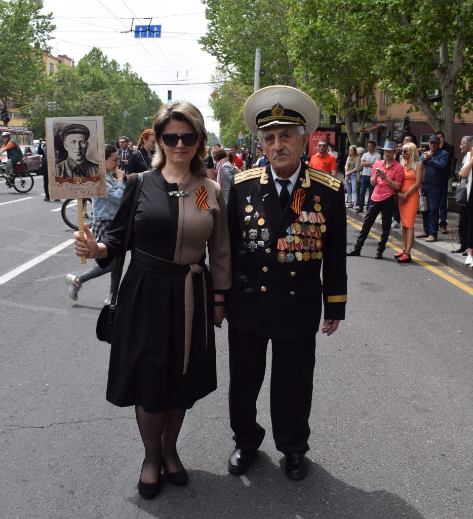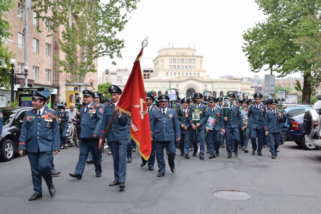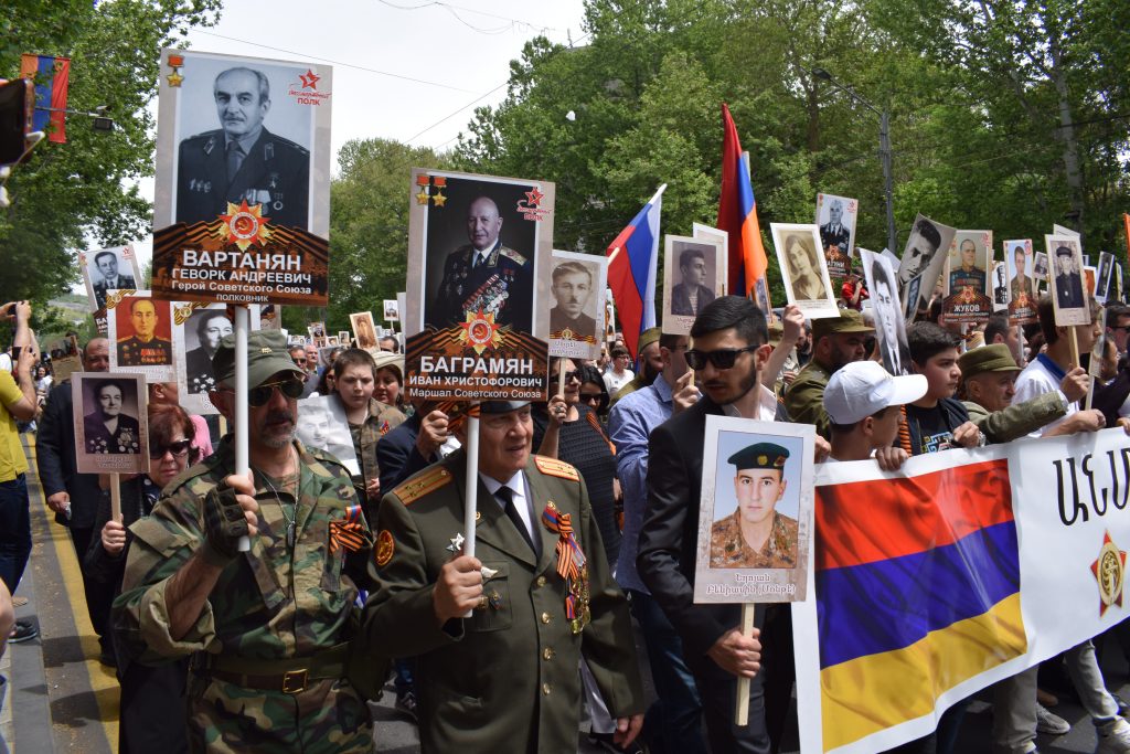 A presenziare alle celebrazioni ufficiali a Erevan è stato invece il presidente della repubblica Armen Sarkissian. Nel primo pomeriggio del 9 maggio egli si è unito al corteo che dal centro della capitale ha sfilato fino al Parco della Vittoria – dedicato, come il nome lo indica, alla Seconda Guerra Mondiale. Sebbene le celebrazioni del 9 maggio a Erevan siano senza ombra di dubbio modeste e periferiche rispetto a quelle, imponenti, che si svolgono a Mosca, vi si ritrovano una simbologia e una retorica molto simili – sintomo delle relazioni ancora molto strette che l’Armenia (al contrario di altre repubbliche post-sovietiche) intrattiene con la Russia.