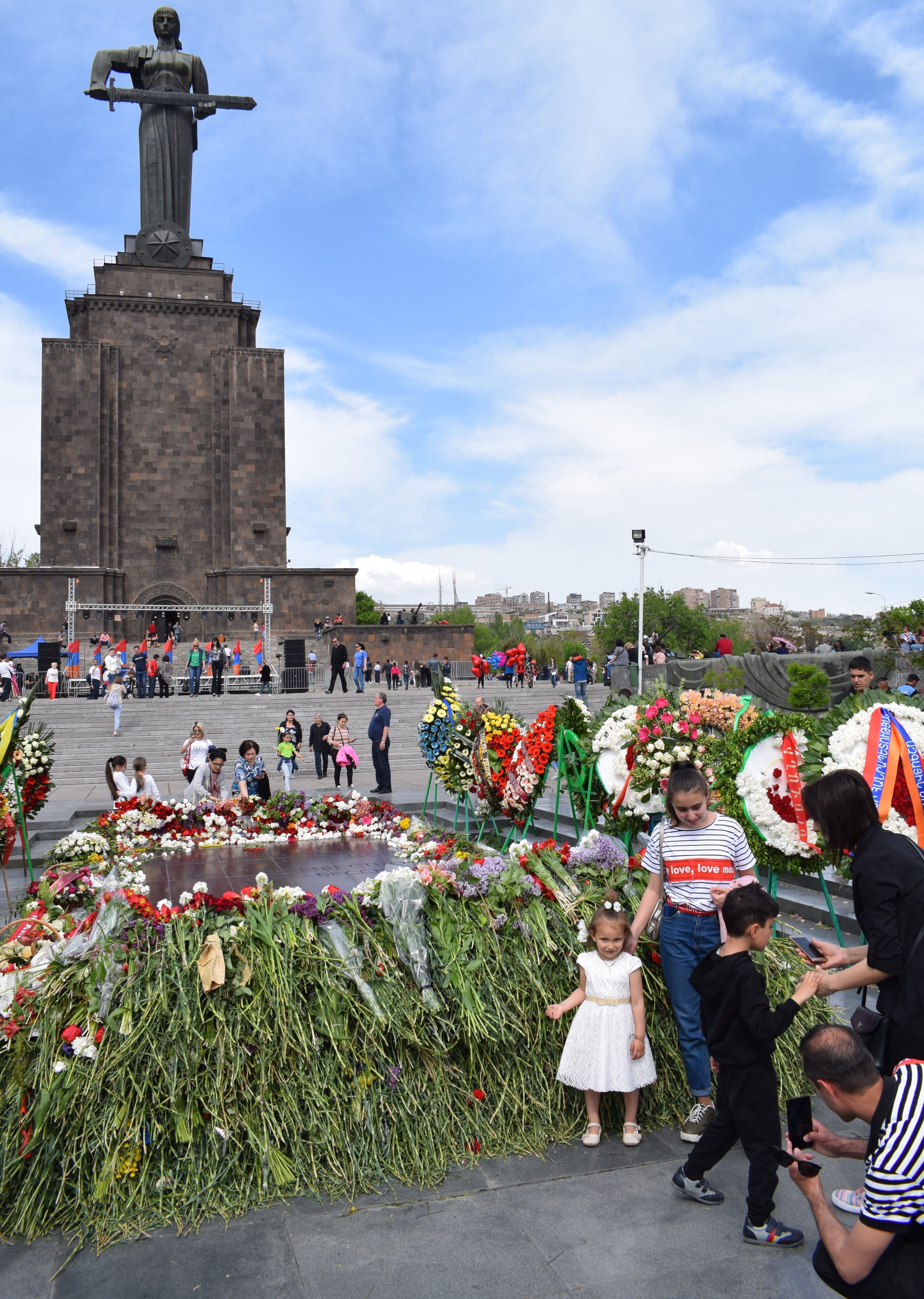 Anche in Armenia, così come in Russia, la militarizzazione della società – inesorabilmente presente in moltissimi ambiti della vita pubblica e quotidiana – emerge in maniera esplicita in corrispondenza del 9 maggio. L’estetica militare, che si esprime attraverso le uniformi, i berretti, le giacche e i pantaloni mimetici indossate da adulti e bambini, è estremamente marcante in questo “Giorno della Vittoria e della Pace”. In fondo, a quale pace si fa riferimento? Quella del 1945 sembra passare in secondo piano, sovrastata dalla simbologia della guerra e del nazionalismo. La pace con l’Azerbaigian riguardo al conflitto del Nagorno-Karabakh, invece, appare ancora lontana.