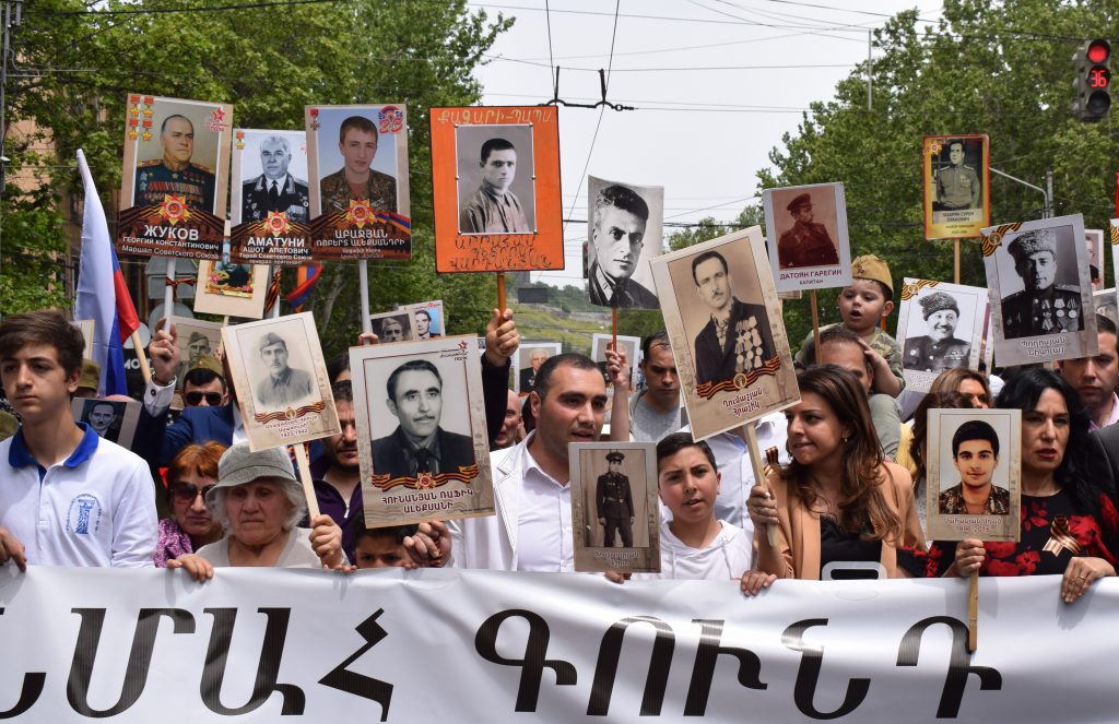 DA EREVAN – Nello spazio post-sovietico (seppur con qualche nota eccezione e crescenti antagonismi), il 9 maggio si celebra il Giorno della Vittoria (in russo Den’ Pobedy): data che segna la sconfitta del nazifascismo durante la Seconda Guerra Mondiale – quella che i russi chiamano ancora oggi “Grande Guerra Patriottica”.